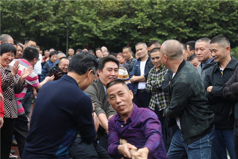 28日,进行了职工拔河比赛,来自各队站的16支男子代表队,4支女子代表队,共300人参加比赛。在抽签确定对手后,15名队员各就各位,双手握紧麻绳,双脚用力蹬地,身体微微后倾,做好迎战准备。随着裁判员一声哨响,队员们使出浑身力气拼命向后拽。双方你争我夺各不相让,中界点的红绳在两支队伍的角力下左偏右摆;两旁的啦啦队不断鼓劲打气,加油助威声此起彼伏……三局二胜定输赢,相逢一笑两者欢。