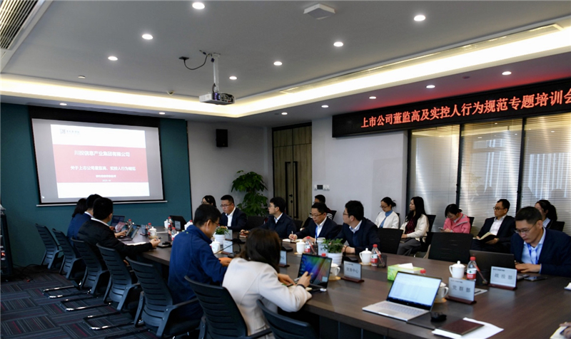 为加强集团管控制度建设,强化外派董监事管理,10月15日,川投信产组织召开“上市公司董监高、实控人行为规范”专题培训会,邀请泰和泰律师事务所卢怡律师授课。董事长、总经理王波,公司各部门及各所属公司相关负责人参加培训。