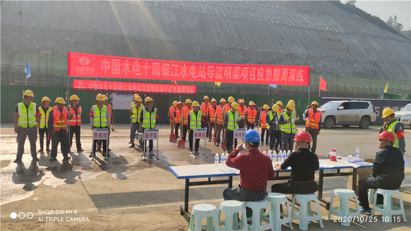 为确保银江水电站导流明渠工程纵向围堰施工安全,增强各参建单位和员工的防汛减灾意识,进一步完善防汛指令、信息传递、应急反应程序,提高工程防汛指挥系统的指挥应变能力,10月25日,川投能源攀水电公司组织水电十局、贵阳院监理等单位开展防汛专项应急演练。