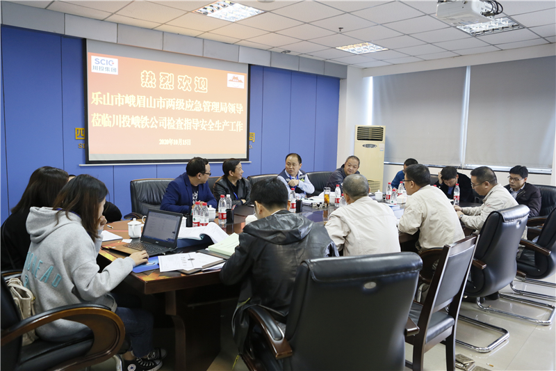 近期,乐山市“铸安2020”监管执法专项行动检查组一行11人到川投峨铁公司检查指导安全生产工作。川投峨铁公司党委副书记、总经理陈新龙、总经理助理郑再春及生产控制中心相关人员陪同检查。