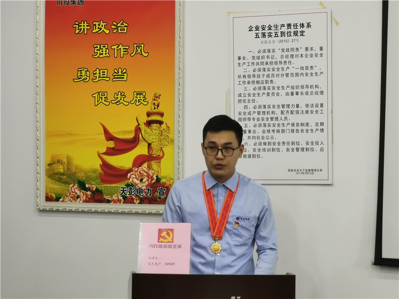 近日,川投能源微党课首讲在天彭电力展开,主讲者是刚获得四川省“四川省抗击新冠肺炎疫情先进个人”光荣称号、来自交大光芒事业二部的技术工程师何啊潭。
