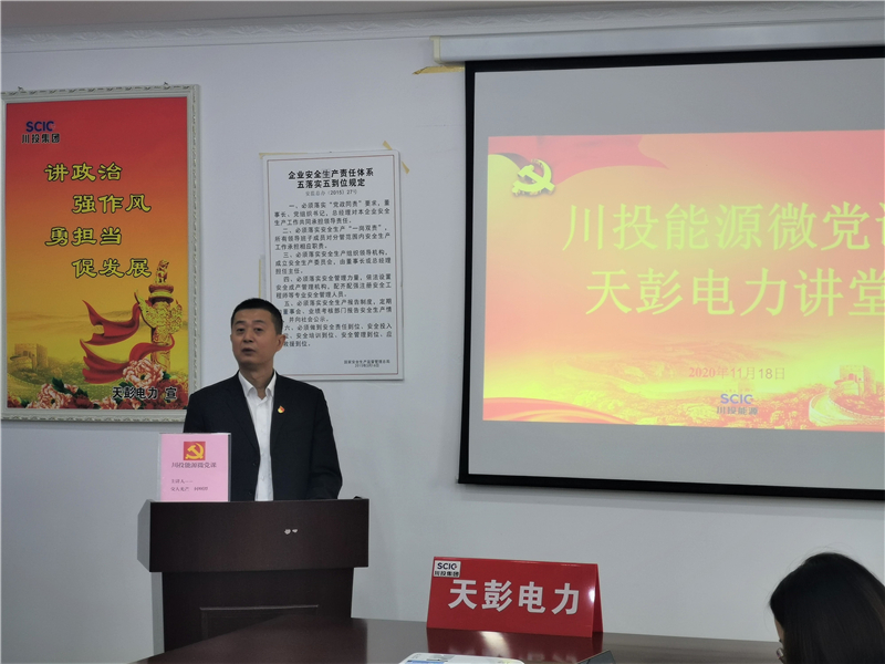 受川投能源党委书记、副董事长、总经理杨洪委托,川投能源党委副书记、工会主席杨超龙为川投能源微党课首讲作开讲致辞。