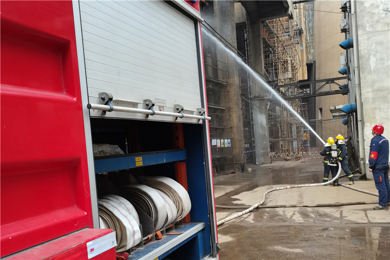 此次演练旨在贯彻落实公司《关于开展今冬明春火灾防控工作的通知》要求,进一步提高公司职工应对着火事故的处置及救援能力。演练以1号机组新建的脱硫吸收塔玻璃鳞片防腐内衬着火为场景。上午11时演练开始后,各参演人员根据自己的职责迅速投入演练,应急处置工作有序展开。北京清新环境技术股份有限公司项目部完成了人员撤离、初期火灾的处置及报警;消防人员快速赶到火灾现场使用开关水枪灭火,兼职消防队配合开展抢险;保卫人员及时到场进行现场警戒和交通管制等。11时30分,演练顺利结束。