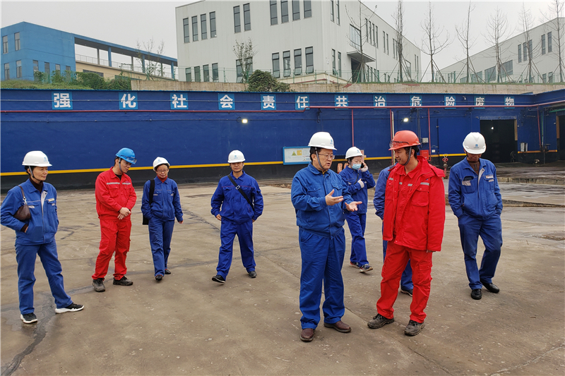 在泸州市高坝的合盛硅业(泸州)有限公司生产厂区,专责们详细察看了现场危废产生收集点、危废仓库设施、危废标志可视化管理以及危废管理制度建设等情况,并与合盛硅业公司危险废物管理部门负责人就危废管理的制度建立及落实、硬件设施建设、危废管理及处置的难点等进行了深入地学习和交流。