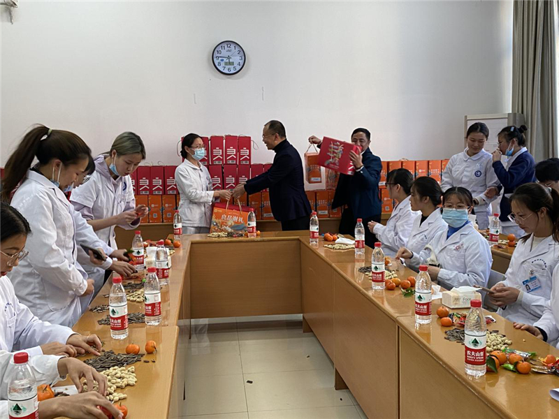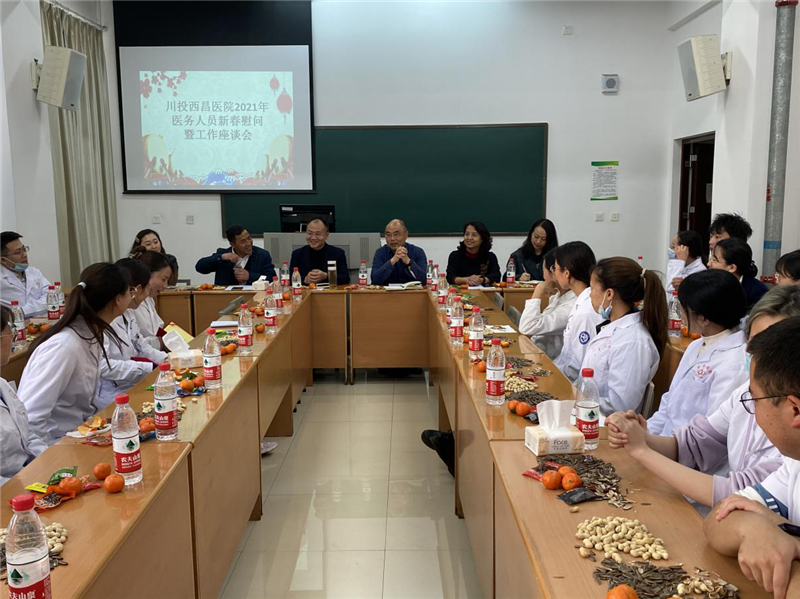 岁序更迭,辞旧迎新。2月3日下午,西昌大健康公司党总支副书记、副总经理、工会主席龚坚和党总支委员、川投西昌医院党支部书记、财务总监杨利一行7人前往攀枝花市中心医院对40名规培医务人员开展新春慰问,并召开工作座谈会,把新春的问候和祝福及时送到战斗在一线的规培医务人员身边。