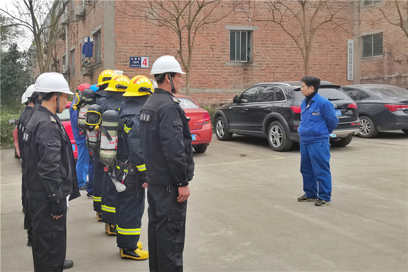 演练以运行宿舍区一寝室电热毯发热电阻短路未被及时发现造成火情为背景展开。14时30分,宿舍管理员发现火情后立即向公司消防队报警,并立即通知人员快速撤离。在接到火情后,消防人员快速出警,第一时间赶到火灾现场并使用开关水枪灭火,保卫人员做好现场警戒和交通管制,相关负责人组织人员疏散。14时40分,演练顺利结束。演练中,各参演人员反应迅速、报警准确、有条不紊,演练达到了预期效果。