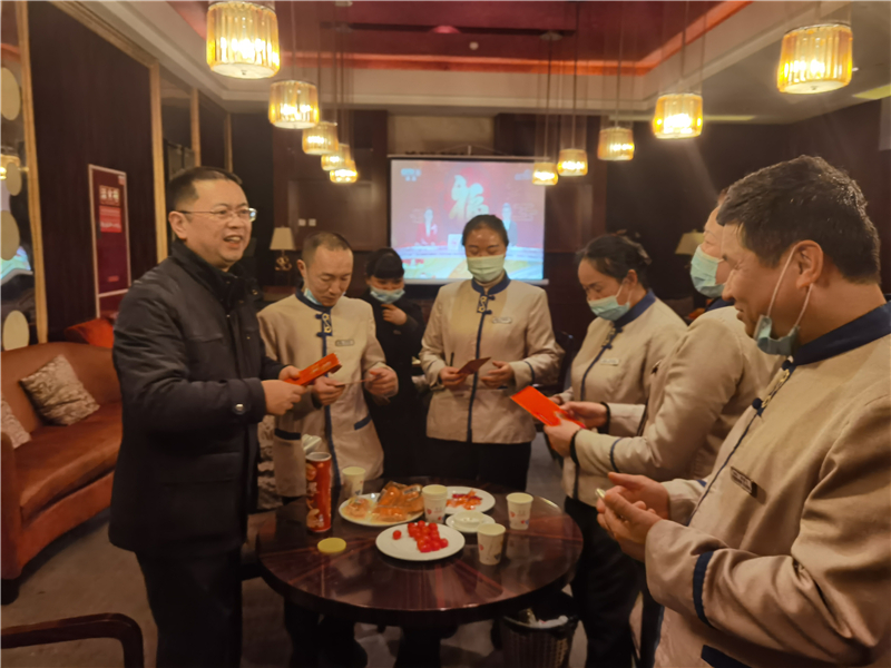 为了体现公司对春节期间在岗职工的关怀,营造节日氛围,公司在阿波罗酒吧为在岗职工准备了饺子,组织在岗职工观看央视春晚,让留守工作没有和家人团聚的职工感受到公司对他们的温暖关怀。公司在岗职工对公司的慰问表示感谢,同时表示春节期间一定尽职尽责认真完成各项工作,站好班、值好岗,保证春节期间各项接待任务圆满完成。
