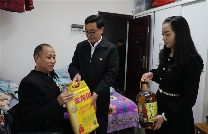 四川省劳模、嘉阳煤矿矿办党员廖某因骑摩托车导致左肩右胯两处骨折,受伤后无法正常工作,家庭生活陷入困境。公司工会为他送去了米油等生活用品,并对他进行了心理疏导。慰问组鼓励他们坚强面对生活,告诉他们困难总是暂时的,希望他好好养伤,争取早日恢复健康回到工作岗位。