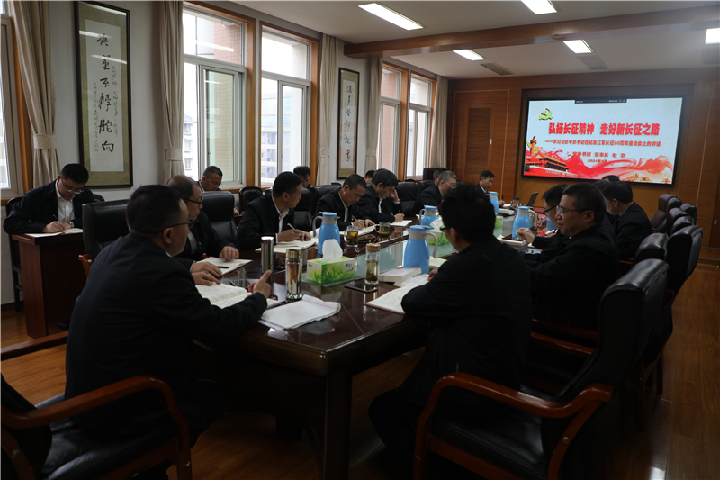 党委书记、董事长杜勤同志以《论中国共产党史》一书中“习近平总书记在纪念红军长征80周年座谈会上的讲话”为内容,深刻领会长征精神的内涵实质。伟大长征精神就是把全国人民和中华民族的根本利益看得高于一切,坚定革命的理想和信念,坚信正义事业必然胜利的精神;就是为了救国救民,不怕任何艰难险阻,不惜付出一切的牺牲精神;就是坚持独立自主、实事求是,一切从实际出发的精神;就是顾全大局、严守纪律、紧密团结的精神;就是紧紧依靠人民群众,同人民群众生死相依、患难与共、艰苦奋斗的精神。他指出,我们要从长征精神中汲取智慧力量,围绕实现“两个一百年”奋斗目标、实现中华民族伟大复兴的中国梦而不懈奋斗。对我们企业而言,努力实现企业发展稳定,长治久安;努力提升职工的幸福感、获得感,打造百年嘉阳、重现企业辉煌实现企业高质量发展就是我们的奋斗目标;要实现这一目标就必须要更加坚定理想信念,脚踏实地、真抓实干,发扬百折不挠的革命主义精神,党员干部要切实履行责任和义务,充分发挥先锋模范作用,继承和发扬嘉阳“艰苦奋斗、求实奋进”的优良传统,进一步提高矿井自动化、智能化水平,提升安全保障能力,巩固煤炭主业,为实现百年嘉阳梦想不懈奋斗。
