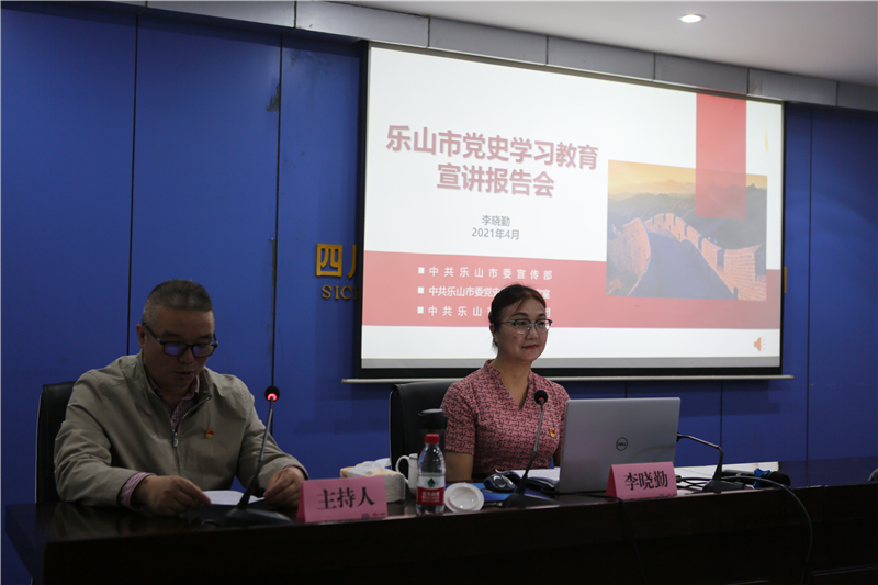 乐山市国资委党委委员、机关党委书记文力生主持宣讲报告会,并对乐山市委和市国资委党委开展党史专题宣讲的目的要求和意义向与会人员进行了动员讲话。李晓勤副教授以四川省、乐山市生动的历史案例和详实的党史文献,从四个方面系统讲解了习近平总书记关于党的历史的重要论述,深刻阐释了开展党史学习教育的重大意义,全面讲述了中国共产党百年奋斗的光辉历程和历史性贡献,重点阐述了开展党史学习教育要深刻把握的重点等内容,李晓勤教授图文并茂的讲解方式、生动形象的语言、深入浅出地阐述,让与会同志们深刻了解了党的百年奋斗历程和党的伟大精神,受益匪浅,催人奋进,收获了学史明理、学史增信、学史崇德、学史力行与学以致用的成效。