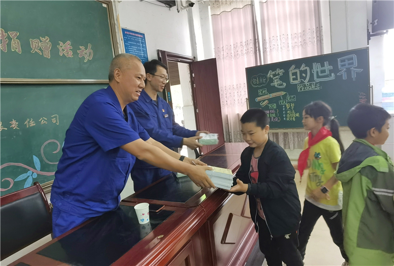 随后,经营管理党支部将准备好的作业本、拼音本、铅笔、套尺、跳绳和经典图书等学习用品用具发给了学生代表。