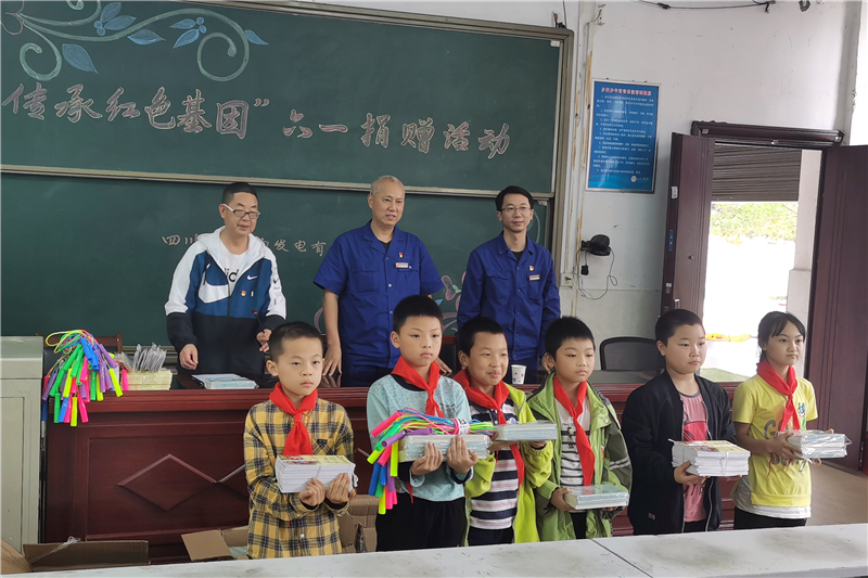 为丰富学习教育形式,深化党史学习教育的开展,2021年5月25日,川南发电公司经营管理党支部到泸州市江阳区江北学校开展了“传承红色基因”六一捐赠活动。