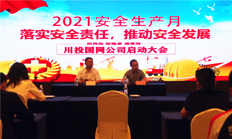 为进一步落实安全生产主体责任,强化各项安全防范措施,持续推进川投国网公司安全文化建设,6月4日,川投国网公司2021年“安全生产月”活动在酒店锦程厅正式启幕,公司经营班子、各部门管理人员、安全员等近90人参加。