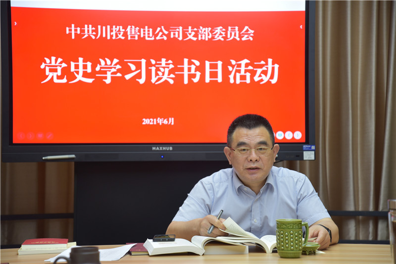 6月7日,川投售电公司党支部在公司党员之家开展党史学习读书日活动。支部书记、董事长、总经理谢伟平主持读书活动。