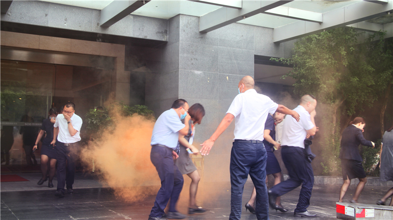 本次演练是川投国网公司2021年“安全生产月”系列活动的重要环节,也是公司为庆祝建党百年扎实开展安全维稳工作的重要内容。本次演练包括人员疏散、现场警戒、消防救护等内容,无论是酒店模拟发出消防警报,警报信息立即确认上报;还是各工作小组严格执行应急预案,快速到达指定岗位,引导“酒店住客”疏散;再是“住店客人”在工作人员的引导下,按照即定逃生路线有序撤离酒店到达指定位置等过程,大家都沉着冷静、秩序井然,活动取得良好效果。随后,参与演练的全体员工,还参加了灭火器实操练习,通过现场实操掌握灭火器的使用方法,增强自防自救能力。
