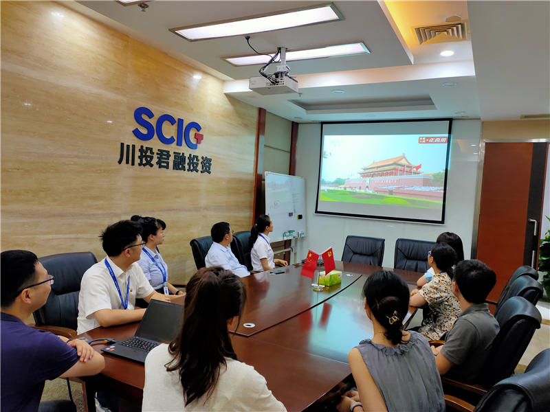 川投君融公司组织全体职工收看直播,党员群众满怀期待与喜悦之情,在川投大厦2207会议室集中收看庆祝大会实况,大家聚精会神聆听习近平总书记的重要讲话,不时为习近平总书记的精彩讲话而激动振奋,发自内心地为党的百年华诞自豪欢呼,共同祝愿祖国和世界的明天更加美好。