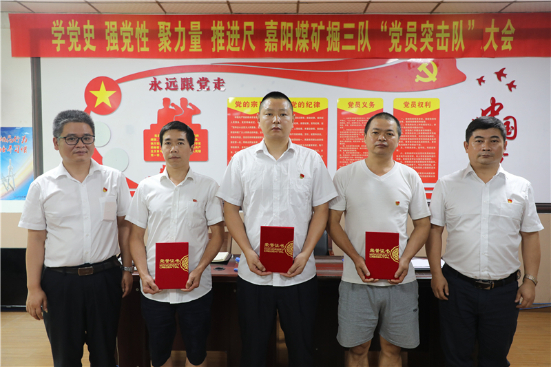 “3个月来没有发生一起‘三违’、31241风巷修护工程提前5天顺利通过竣工验收、31232切眼按时间节点顺利贯通并完成搬迁、综掘进尺创下了单日推进13米生产记录……”突击任务取得圆满胜利。7月1日下午,嘉阳煤矿掘进三队党支部对“党员突击队”先进代表进行了表彰。