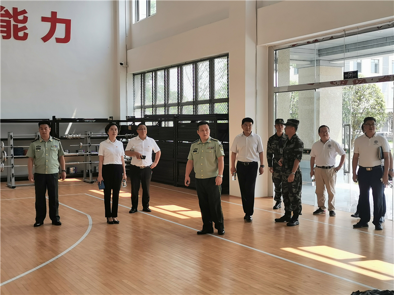 支队长李河毅,政委龙先武全程陪同张书记一行。期间参观了官兵宿舍、物资仓库、综合战备库、文体活动室、田径训练场和室内训练馆等场所,实地观摩见习武警官兵日常训练和军事特战训练项目。详细了解了中队史馆、党建阵地、图书室和文体活动中心等相关建设情况。