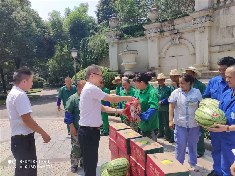 为切实开展防暑降温工作,确保公司暑汛期工作持续平稳,根据米兰(中国)工会指示精神和公司工会工作部署。7月21日,公司董事长林光友、总经理张小平、副总经理陈科文一同来到物业服务中心、园林班一线开展“关爱职工 夏送清凉”慰问活动。