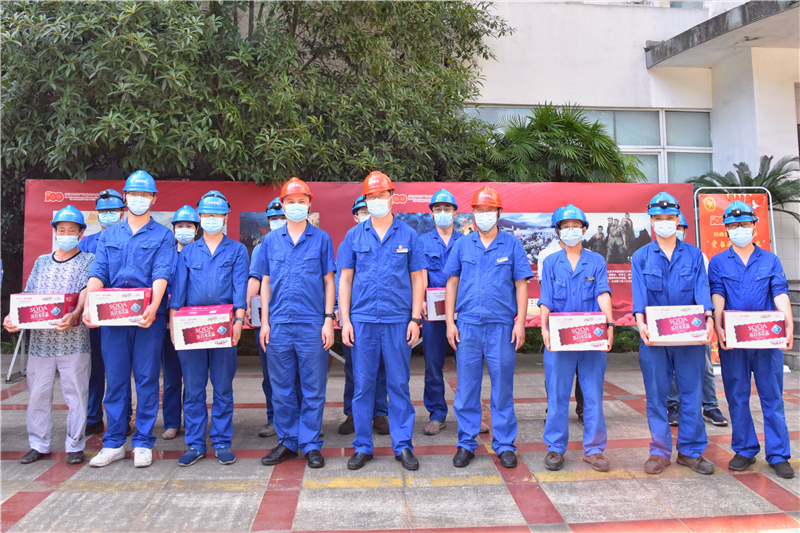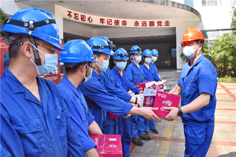 炎炎夏日送清凉、箱箱饮品暖人心。7月29日,公司开展“夏送清凉”活动。公司党委书记、董事长刘胜金,党委副书记、总经理陈嵩,党委副书记、工会主席黄松深入现场,代表公司慰问奋战在高温酷暑下的公司一线员工,送上清凉,送去关爱。