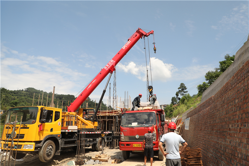 瓦斯发电站的建设是嘉阳集团十四五规划重点工程之一,它采用低浓度瓦斯发机组进行发电,除了能增加企业经济效益外,还是重要的节能减排项目。项目主要是由嘉阳煤矿机电队、物供司搬运改制班、综司综合服务队共同参与建设。由于瓦斯发电站正处于厂房建设当中,吊卸场所环境较为不利;施工现场路面不平,需铺设大量木枕方为吊车安全起吊做准备;挂绳、稳平、指挥、现场安全管控等都需要与外请的吊车师傅默契配合,加上烈日高温,嘉阳职工面对诸多不利因素,依然坚守岗位,负重前行。