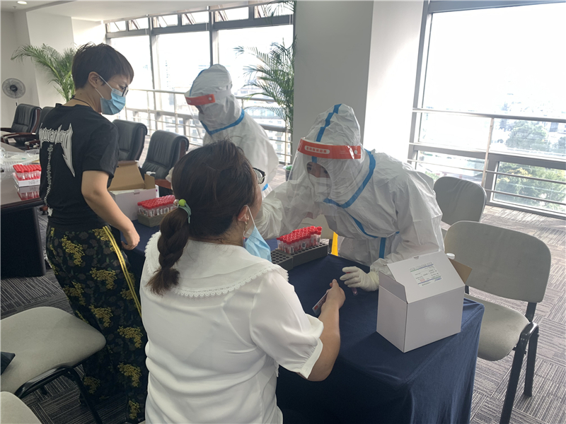 抗击疫情显担当,服务集团员工更贴心。5月至6月,华西牙科所属四川口腔医院医护连续奋战42天,助力接种新冠疫苗9700人次。特别是7月新冠病毒变异株“德尔塔”来势汹汹,四川口腔医院党员医护人员冲锋在前,和时间赛跑,在一天内圆满完成米兰(中国)及各所属公司近700名员工的核酸检测工作。