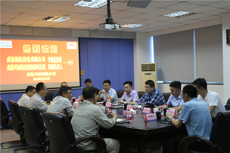 近日,川威集团成渝钒钛设备采购公司总经理李新、成都兴城供应链集团威钢项目负责人吴麒一行到访川投峨铁公司。川投峨铁公司党委副书记、总经理陈新龙,营销总监周全以及供销公司相关负责人员在908会议室接待了来访客人一行。
