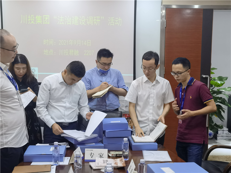 二是开展法治调研工作。川投君融党支部书记、董事长梁涛就川投君融公司法治建设、合规管理、合同管理、风险防控等方面工作进行了汇报。法律事务部及泰和泰律师事务所一行在仔细查阅了相关资料后,认为川投君融法治建设、合规管理、风险防控等工作取得了明显成效,并希望川投君融在工作中查漏补缺,提高法治思维运用能力,全面防控企业法律风险。