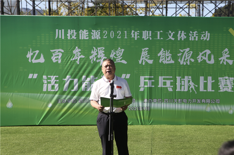 川投能源党委书记、副董事长、总经理杨洪做开幕致辞。他指出,在川投能源系统内开展职工文化体育系列活动具有重要意义,不仅要在竞技场上充分发扬“奋发向上、不惧困难、勇往直前”的国球精神,也要在未来工作中坚守不忘初心的信念,砥砺勇当先锋的斗志,涵养团结一心的品格。