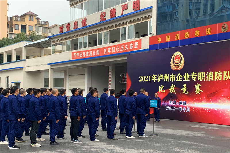 为全面检验企业专职消防队练兵工作成效,提升消防队伍整体战斗力和凝聚力,10月19日,泸州市消防救援支队在纳溪区消防救援大队训练场举办了2021年泸州市企业专职消防队比武竞赛。公司组织8名消防队员与泸州老窖集团有限责任公司等9支企业专职消防队同台竞技。