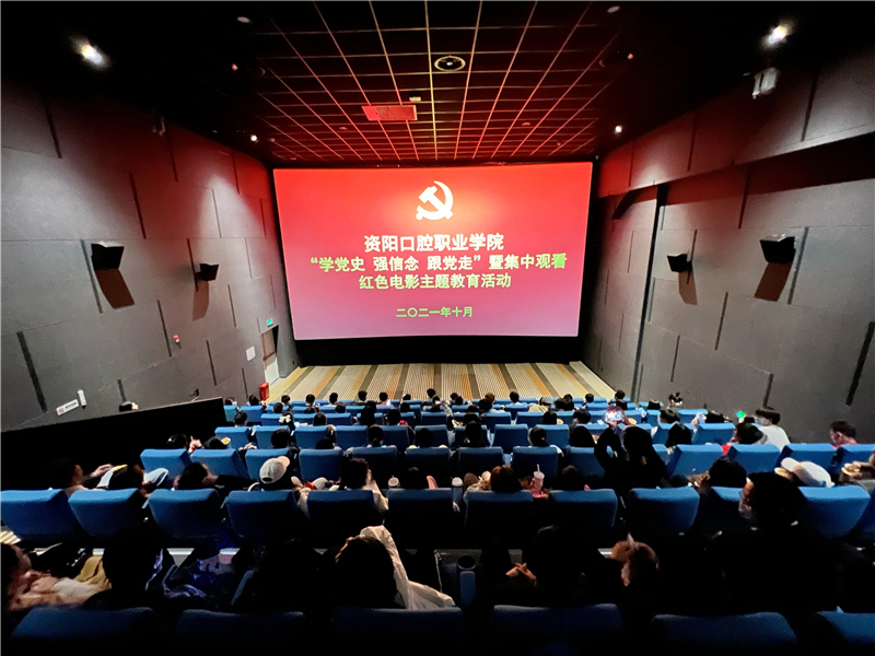 为了将党史学习教育进一步走深走实,10月22日下午,资阳口腔职业学院开展“学党史 强信念 跟党走”暨集中观看红色电影主题教育活动,组织200余名师生观看《长津湖》《我和我的父辈》,接受爱国主义教育的精神洗礼,传承伟大的抗美援朝精神。