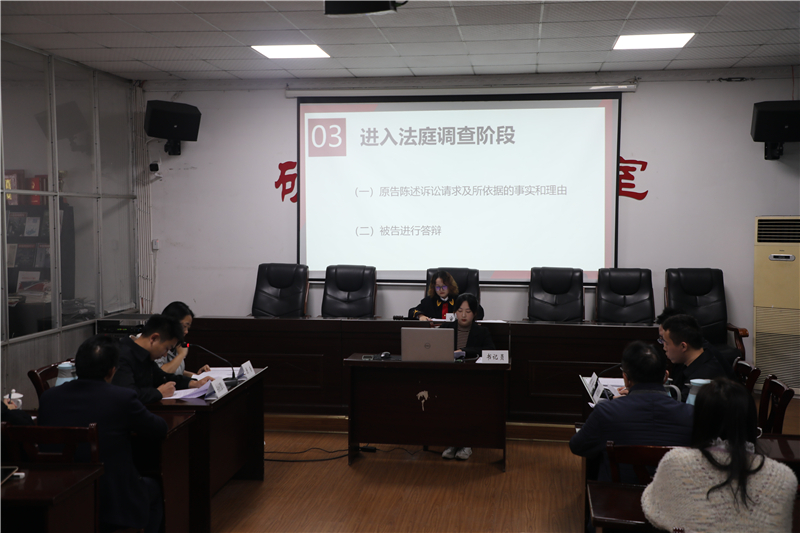 随后模拟法庭开庭,审判员、书记员、原告、被告、委托代理人分别就位,法庭调查、法庭辩论、法庭调解、最后陈述、宣判五个环节有条不紊地进行,将法院开庭过程进行了生动的情景再现,每个人认真演绎了自己的角色,慷慨陈词,据理力争,精彩的表现赢得阵阵掌声。精心挑选的合同纠纷、劳动用工、职务代理、婚姻家庭四个典型案件涉及到的法律知识与职工生产生活息息相关,在愉快的沉浸式体验中这些知识不知不觉入脑入心。