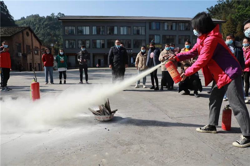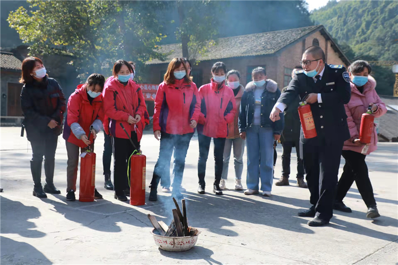 为进一步普及消防安全知识,提高火灾防控能力,增强公司员工和景区承揽商户在紧急情况下的应变和自我防护能力。11月10日,川投峨旅安办邀请乐山市卫安消防中心教官来到芭蕉沟,带领大家一起学习消防安全知识,开展实战演练。