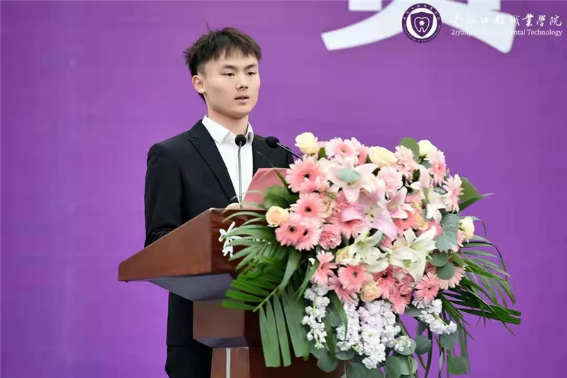 查华洋,2019级医疗设备应用技术专业。资阳口腔职业学院首届学生中第一位国家奖学金获得者,曾作为优秀学生代表在2021年开学典礼上进行发言。谈到自己的偶像科比时,他的眼里闪着光,他说,我也见过凌晨四点的口职院,你们信吗?