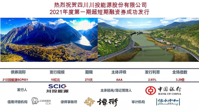 11月8日,川投能源公司首期270天超短期融资券10亿元成功发行,利率2.85%(低于部分当日同期银行业同业存单利率)。