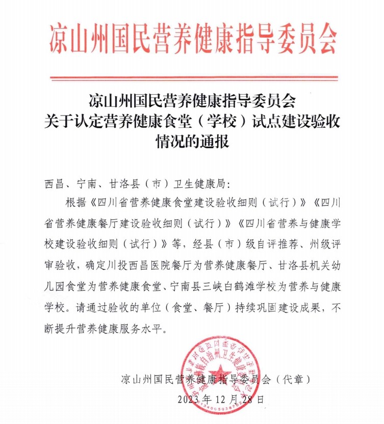 患者的营养摄入,与身体恢复速度息息相关,怎么样吃的健康、吃的安心、吃得放心是大家关心的问题。自开诊以来,川投西昌医院高度重视营养健康食堂建设,积极为群众提供舒适的餐食服务,经不断努力,川投西昌医院于2023年12月被评审为四川省营养健康食堂,全州仅三家单位获评。