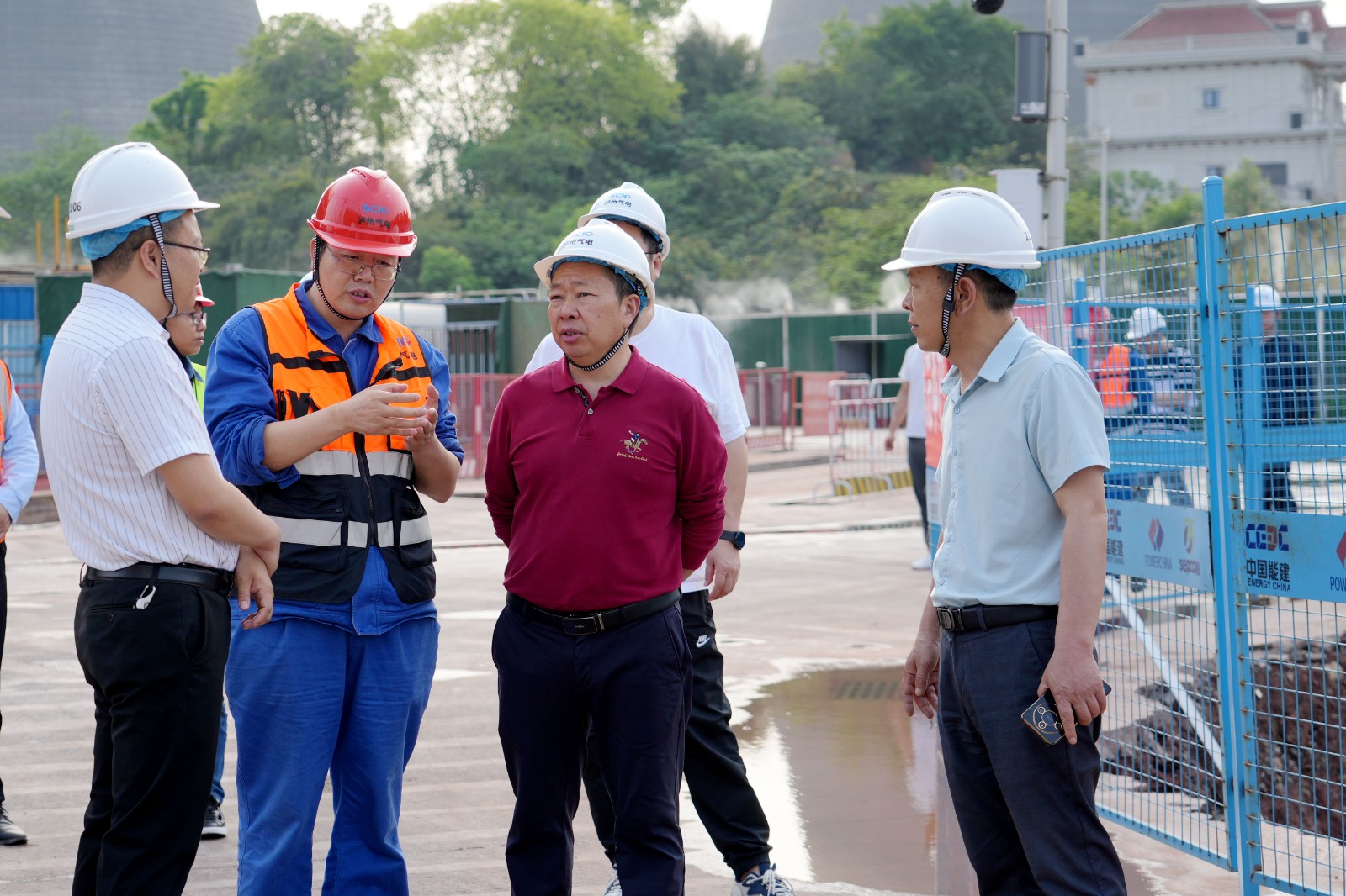邱俊一行实地察看了项目施工现场,听取了泸州气电总经理助理、工程技术部主任孙勇关于川投泸州天然气发电项目建设进度、安全基础管理、安全风险管控及隐患排查治理等工作开展情况的汇报,对项目安全生产工作开展情况、安全检查整改情况进行了检查和指导。