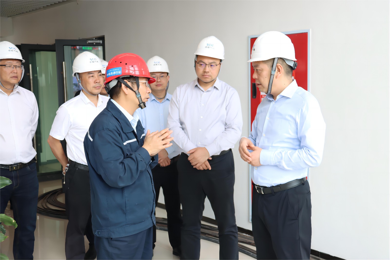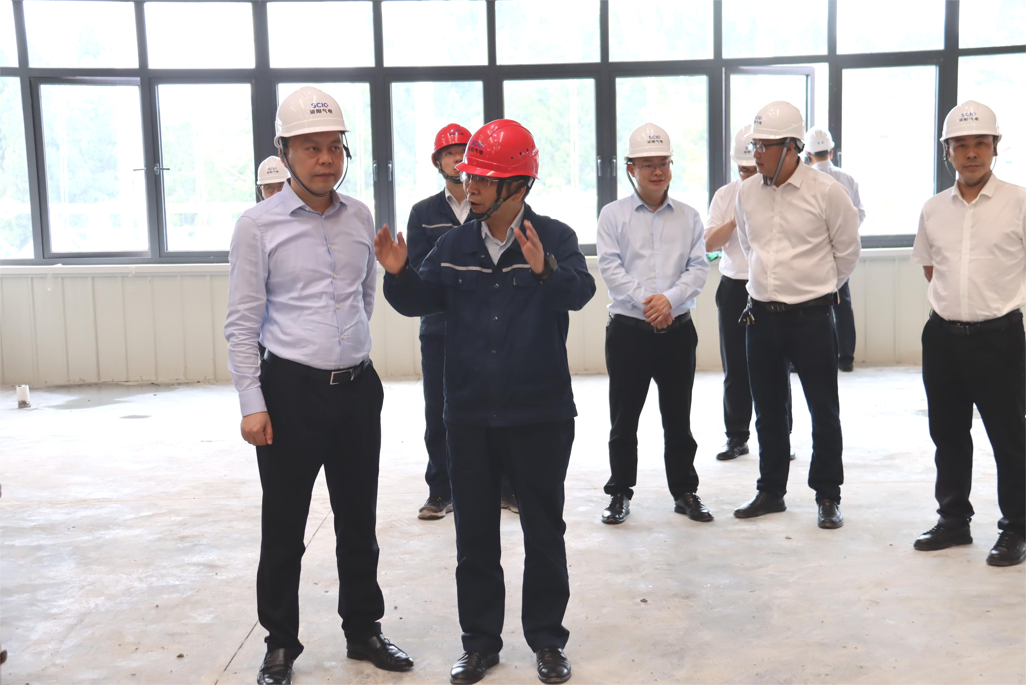 刘建华深入主厂房区、智慧管控中心等区域,实地查看项目建设进度情况,详细了解资阳燃气电站#1机组试运行准备情况,并就供气保障、安全生产等事宜现场协调安排。