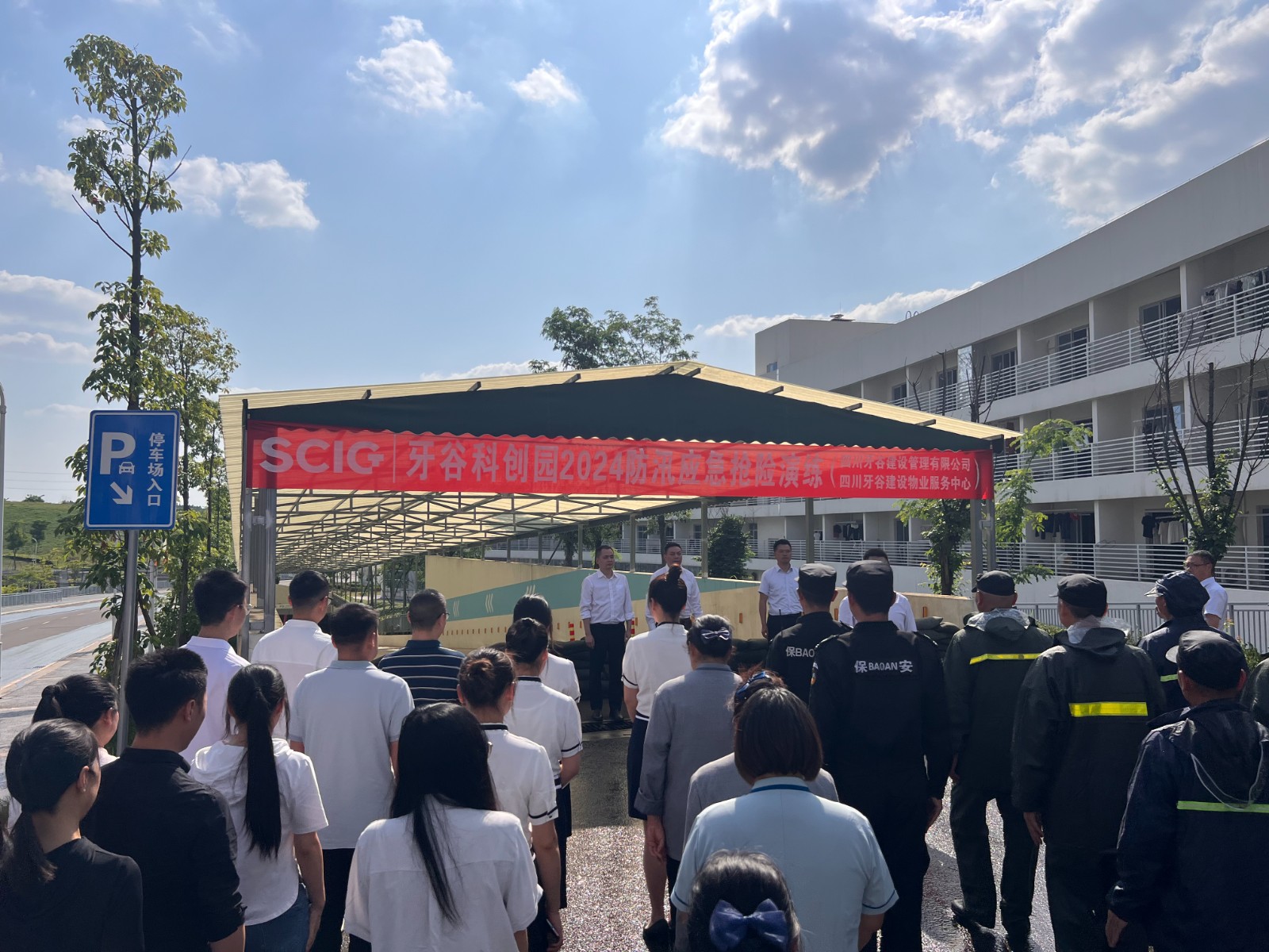 为进一步做好中国牙谷科创园汛期安全防范及提升应对突发状况的能力,最大限度保证园区广大人民群众的生命财产安全和设施设备安全。4月26日,牙谷公司组织佳友物业开展园区防汛应急演练,公司全体员工,佳友物业相关人员共50余人参加。