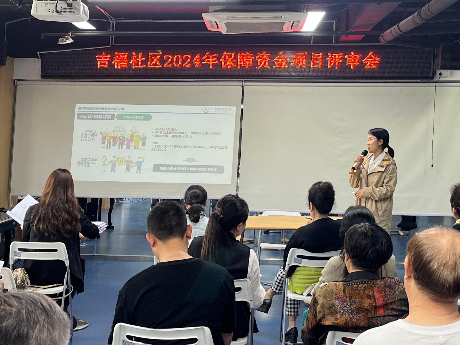 为进一步嫁接社区、居家养老资源,服务更广大长者,4月25日,川投盛榉公司参加成都市武侯区晋阳街道吉福社区2024年社区保障资金项目评审会,并通过现场答辩、评审委员会及专家打分的方式,顺利中标吉福社区2024年“爱心邻里 共建美好家园”——社区志愿服务项目,成功迈出“社区-居家-机构”养老业务链式发展第一步。