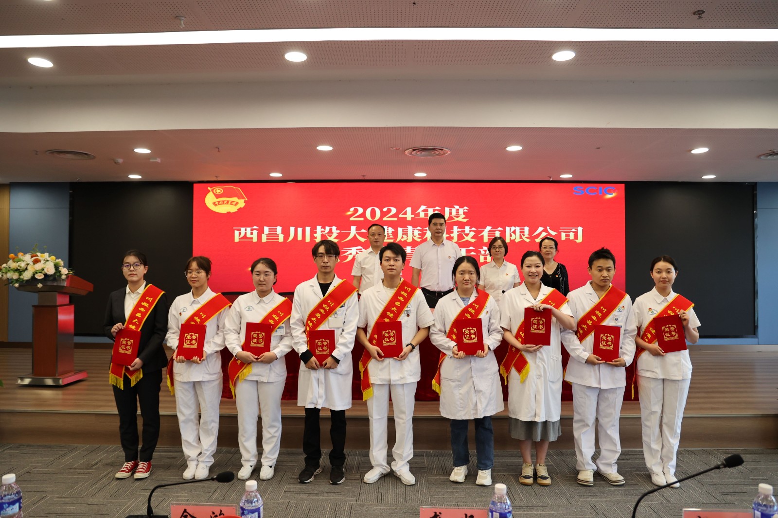 为表彰2024年度表现突出的优秀护理人员和团队、青年优秀人才,发挥榜样的示范引领作用,5月13日下午,川投西昌大健康公司在医院多功能厅召开“5·12护士节”暨“五·四”表彰大会,会议由公司党委副书记、院长金鸿主持。公司和医院领导班子出席会议。