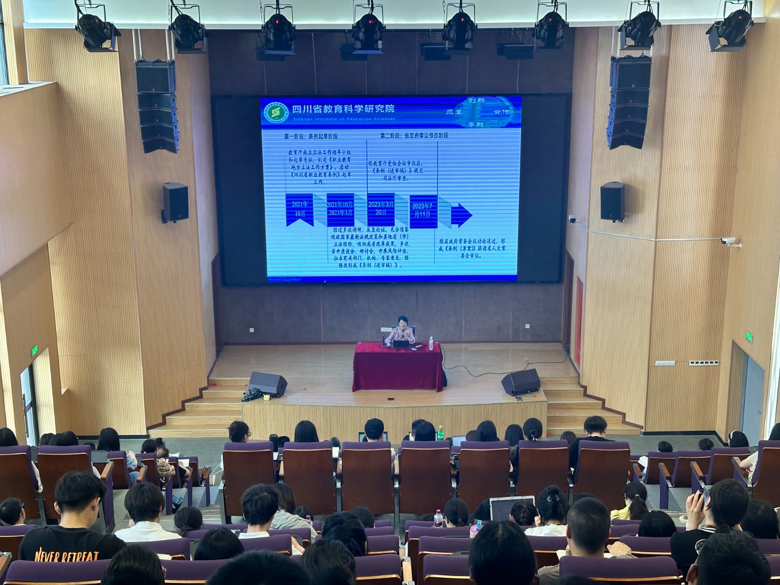 屈璐博士作为省教科院专家,深度参与了省职教条例的起草以及修订过程。讲座中,她从条例的立法背景、立法历程、立法思路、法条内容解析和实践审思五个方面进行深度阐释,并结合自己从事职业教育理论研究的实践经验,指出了职业教育的发展规律、特色和定位。