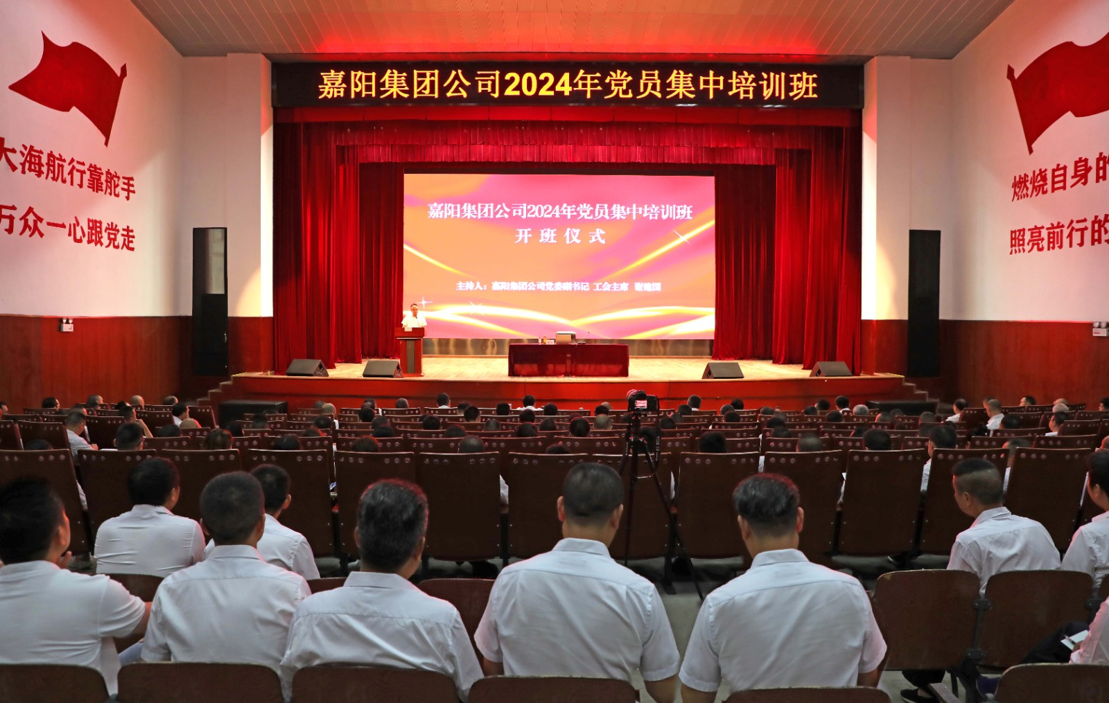 6月20日至21日,嘉阳集团公司在米兰(中国)党校嘉阳校区举办 2024年党员全覆盖集中培训班,全公司党员、入党积极分子共456人参训。开班仪式由嘉阳集团党委副书记谢建国主持。