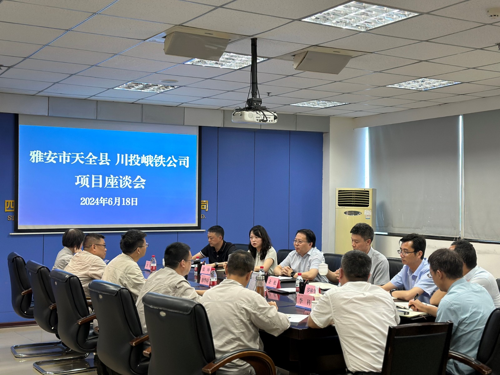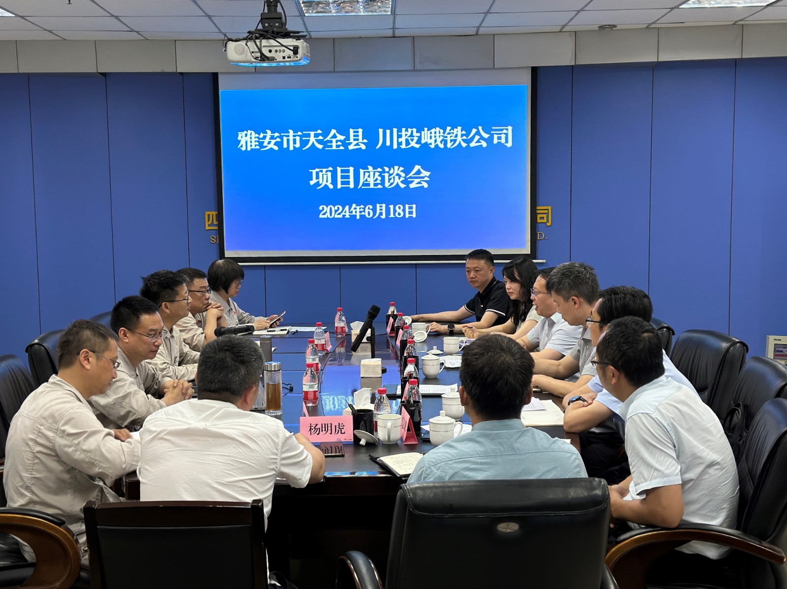 6月18日,天全县县委书记余力,县委常委、县人民政府常务副县长余松,雅安市发改委环资科科长张坤等一行到访川投峨铁公司,川投峨铁公司党委书记、董事长唐华应,党委副书记、总经理陈新龙与代表团一行召开了项目座谈会。