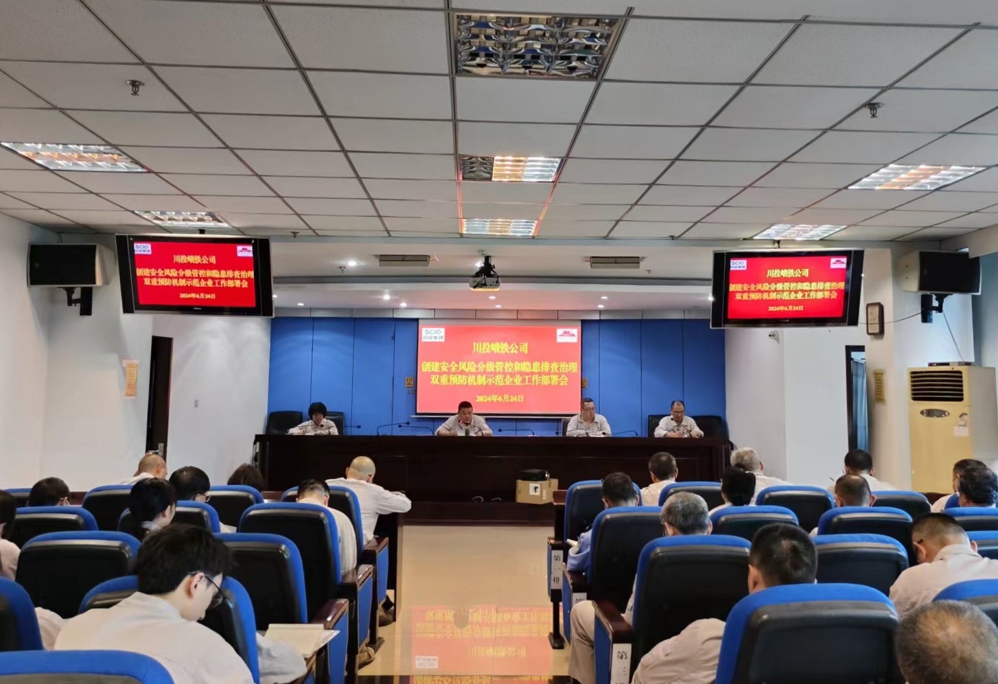 6月24日,川投峨铁公司召开了创建安全风险分级管控和隐患排查治理双重预防机制示范企业工作部署会。公司党委副书记、总经理、安环职健委主任陈新龙到会并讲话,会议由总经理助理、安环职健委副主任郑再春主持。