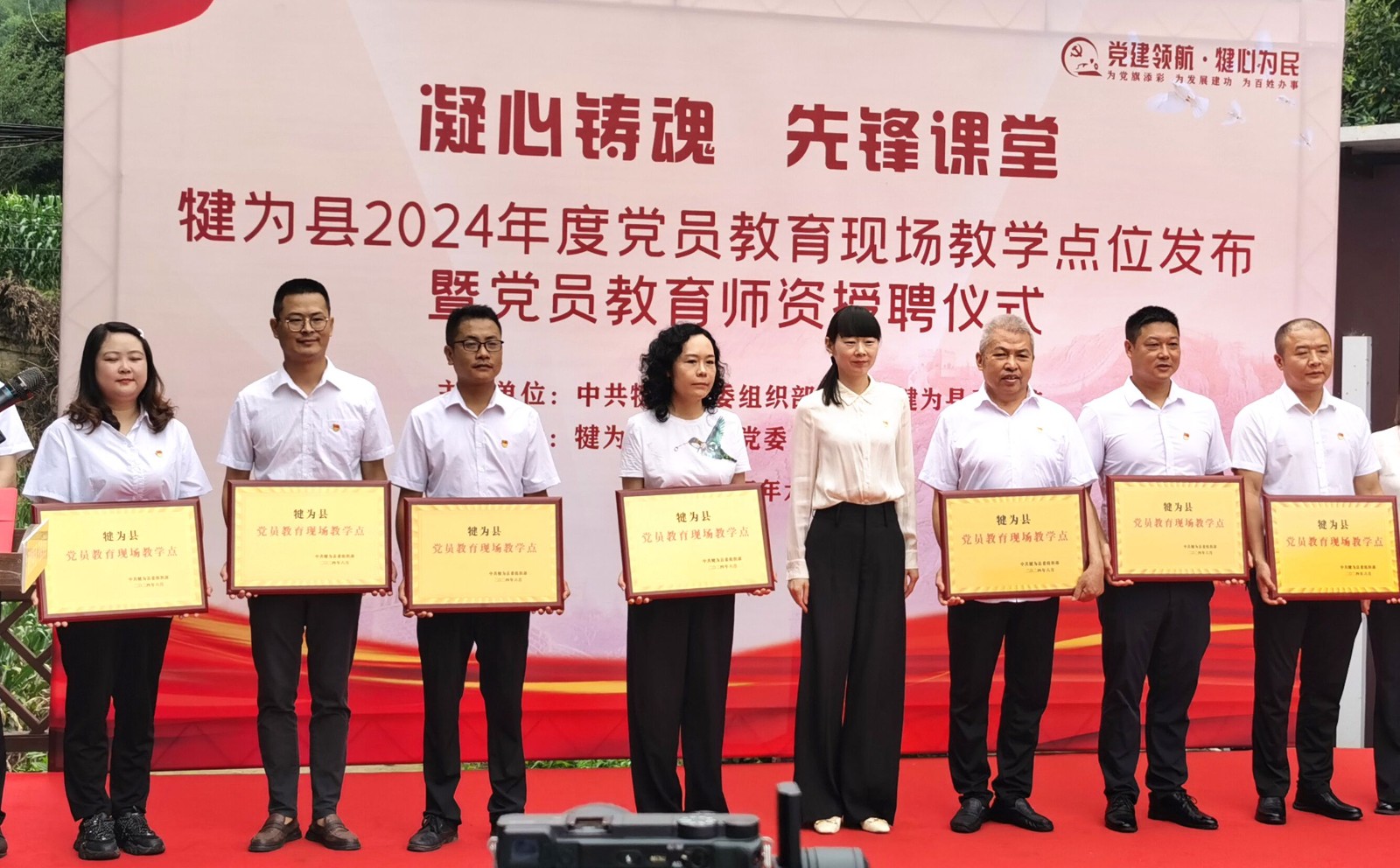 6月25日上午,犍为县党员教育现场教学点位发布暨党员教育师资授聘仪式在小市村“中共犍为县第一个支部陈列室”举行,嘉阳煤矿等13个单位获犍为县首批党员教育现场教学点授牌,沈忱等57人被纳入犍为县党员教育师资库。
