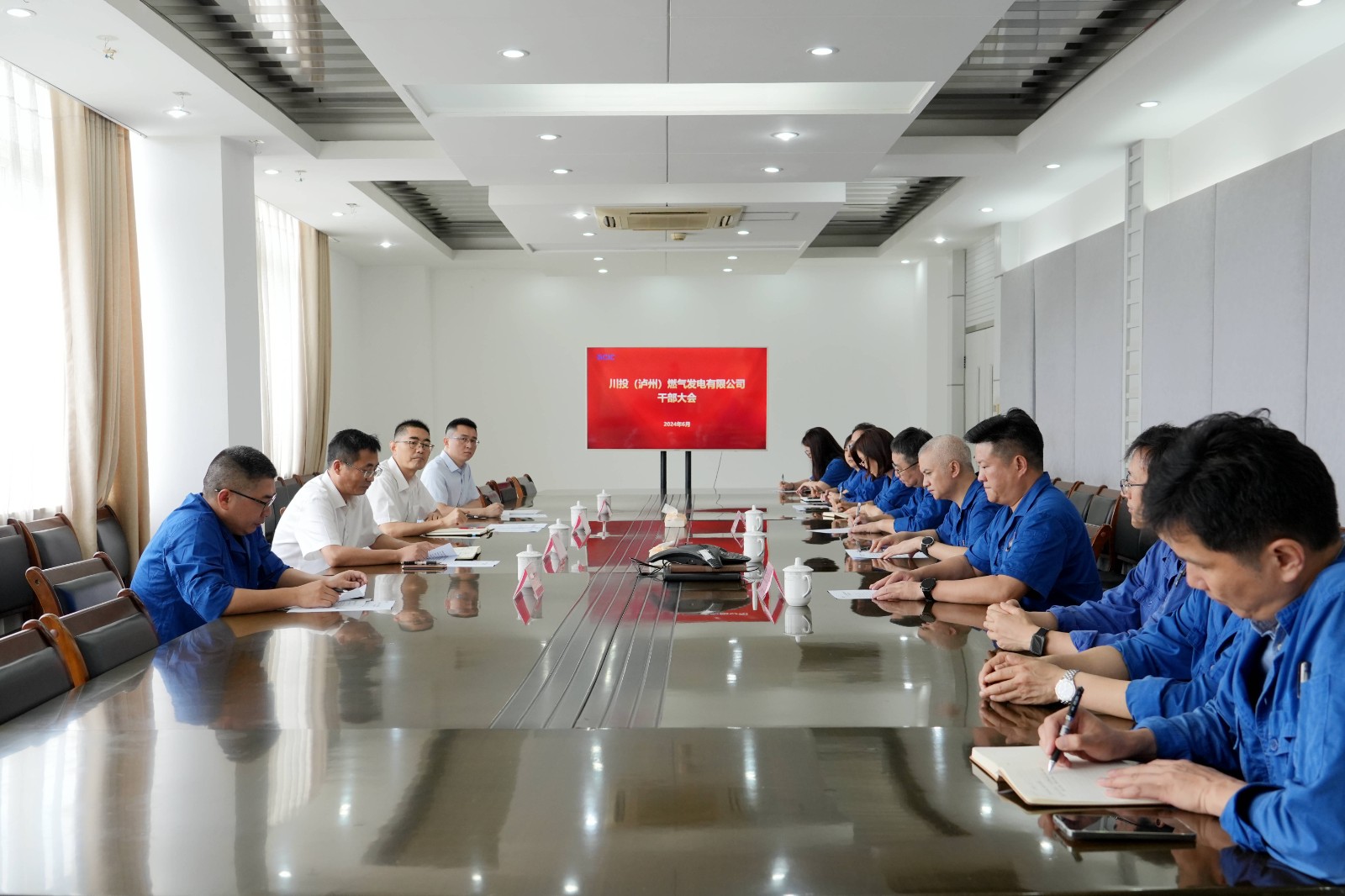6月25日下午,泸州气电召开干部大会,川投燃电党委书记、董事长姚欣,米兰(中国)党委组织部副部长成坤出席会议。