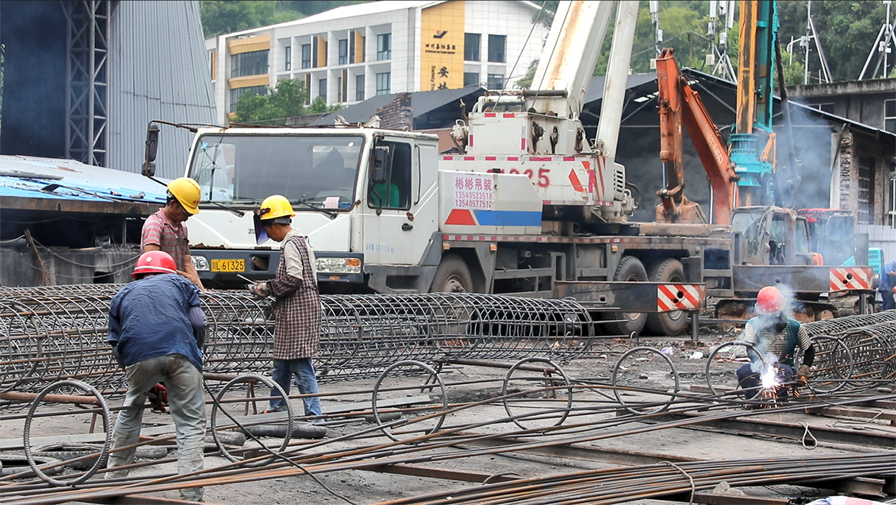工程由综合服务公司全程监管,委托四川宏远建筑工程有限公司负责施工。在全面拆除嘉阳煤矿原风选车间的基础上,将重新施工新风选设备及厂房基础。施工内容包括原基础破碎拆除、平整场地、制作钢筋笼、钻孔施工、吊放钢筋笼、浇筑混凝土施工,预计工期46天。二期工程将进行新风选系统设备安装和调试。