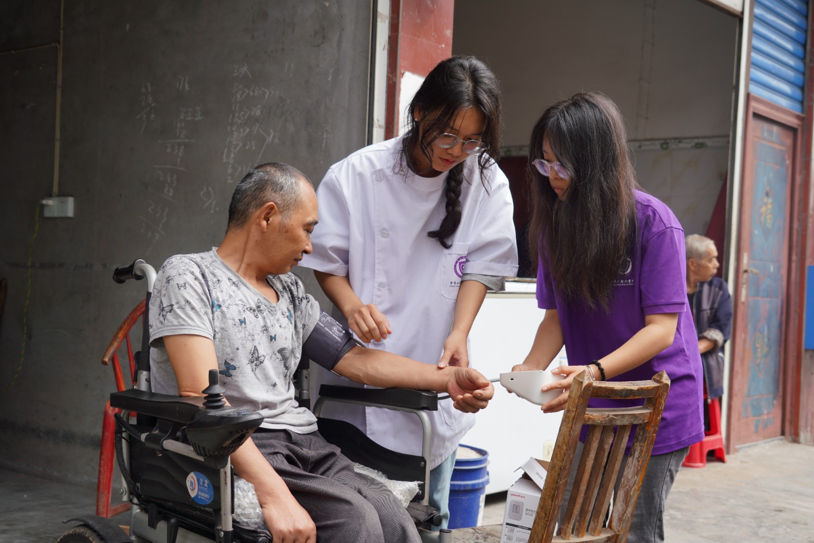 “你们真是太用心了,还专门上门来检查,真的是太麻烦你们了,你们这些大学生娃娃是好样的!”81岁的抗战老兵郑大爷眼中闪烁泪花对上门服务的志愿者说到。学院志愿者每到一位老人家中,都会详细询问老人的身体情况、饮食情况,进行艾灸、推拿、测量血压等义诊服务,并对老人讲解定期检查身体的重要性,耐心解答老人提出的各种健康咨询。同时,带队老师还结合临床经验,针对每位居民各自存在的不同口腔健康问题,提出了治疗方案,从早期预防、用药、健康生活方式等方面给予耐心的专业指导,零距离解答居民最关心的口腔问题。