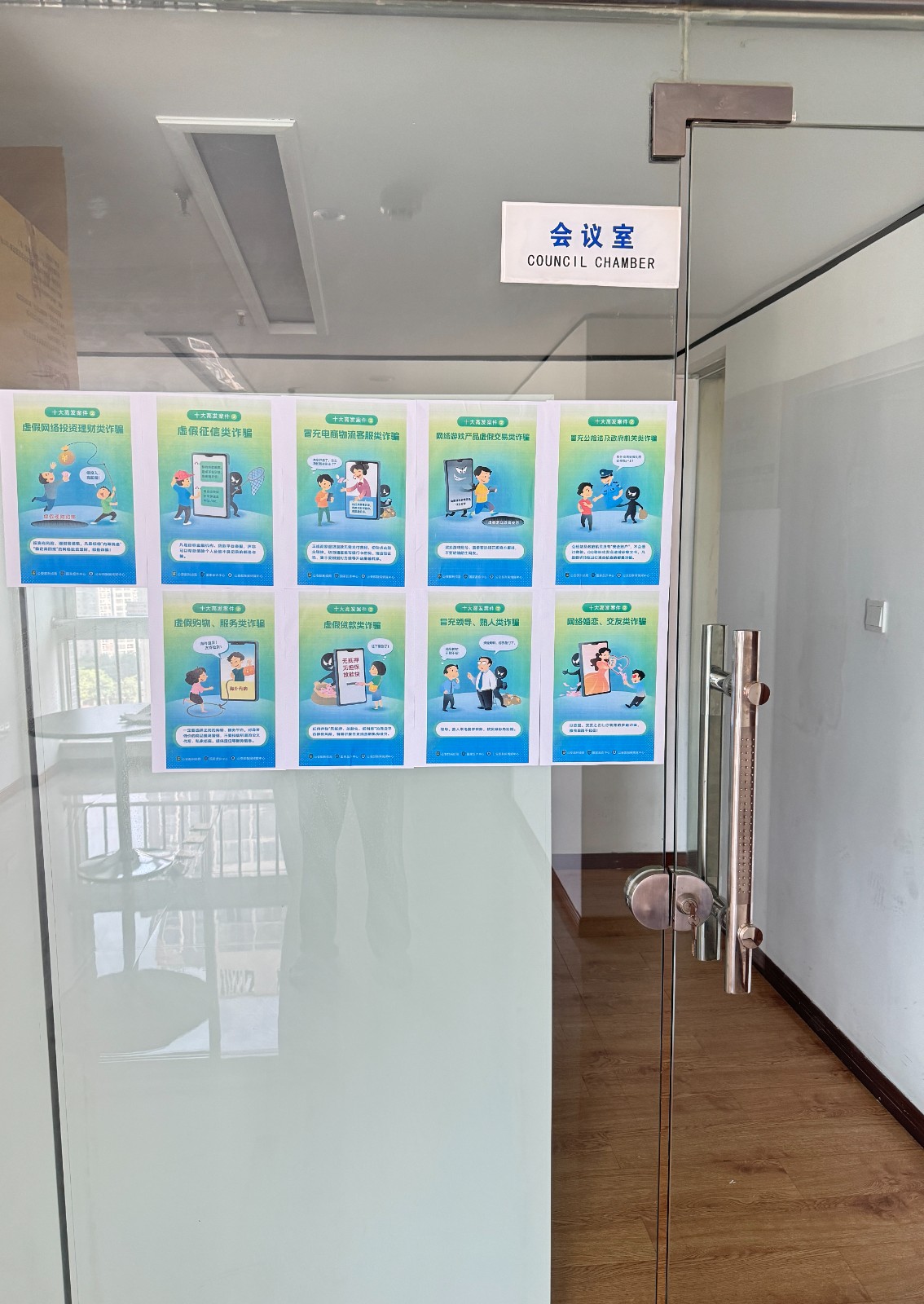 公司组织专门团队,深入各个项目现场,包括住宅小区、商业楼宇、办公楼宇、公共设施等,进行海报的张贴工作。通过醒目的位置选择和合理的布局规划,确保每张海报都能吸引过往人员的注意,达到“抬头可见,低头可思”的宣传效果。同时,公司还利用项目内的公告栏、电梯间、楼道等公共区域,进一步扩大宣传覆盖面,形成浓厚的反诈氛围。